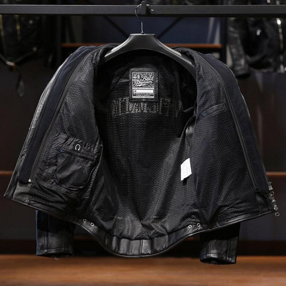 Crafted from premium full-grain cowhide, this Harley-Davidson leather moto jacket merges rugged style with functionality. A stand collar with metal snaps, reinforced shoulders, and accordion pleats ensure mobility and durability for every ride. The vintage-inspired ‘Affiliation’ embroidery enhances visibility at night, while underarm vents and a breathable mesh lining keep you cool. A detachable hood, inner leather pocket, and earphone slot add modern versatility. Let this jacket accompany your adventures, combining classic moto charm with contemporary comfort.