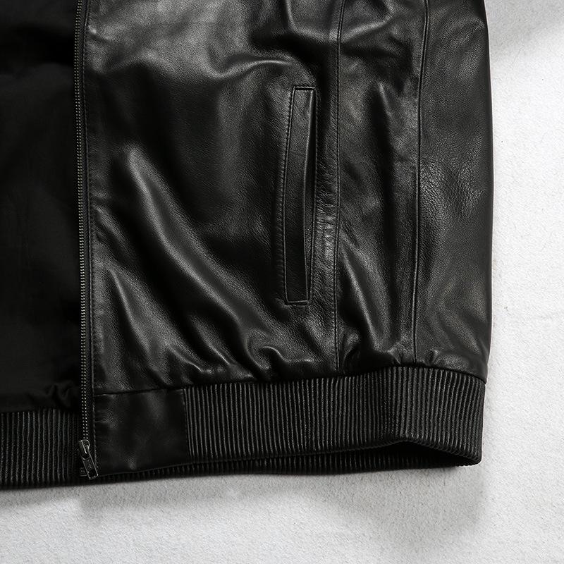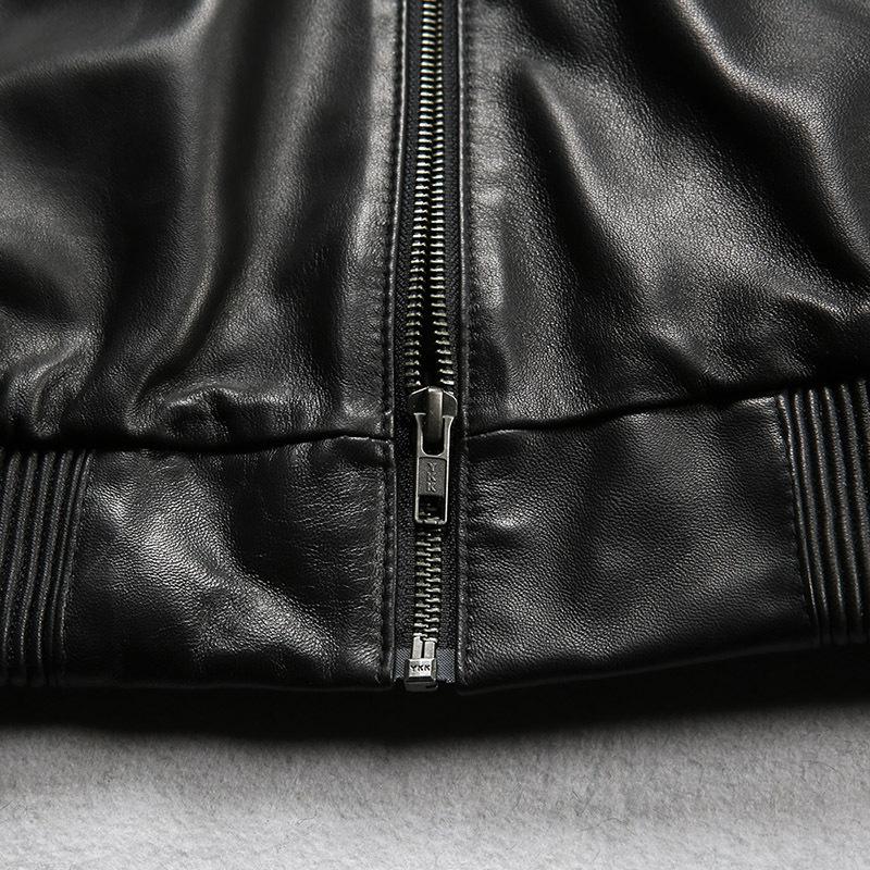 This classic bomber jacket is crafted from premium New Zealand lambskin leather with a luxurious 0.9mm thickness. Its silky-smooth texture and elegant natural sheen are reminiscent of baby-soft skin, offering unmatched sophistication. Crafted from premium Cowhide leather with an approximate thickness of 0.8 mm, this jacket is built for durability and a clean look. The leather's thickness and durability provide a solid, reliable feel, while the soft and flexible sheepskin lining enhances comfort. With a comfortable weight and warmth, this jacket works well in any season, offering a straightforward, lasting style. Equipped with a high-quality Japanese YKK zipper, this jacket ensures smooth and reliable operation. The sturdy design provides long-lasting durability and effortless closure, adding a touch of elegance and functionality to the overall look. The premium zipper choice reflects attention to detail and enhances your dressing experience. Designed with a brushed matte finish, this leather jacket delivers a soft, velvety touch and an understated look. The unique treatment minimizes shine while maintaining the leather’s durability and classic appeal. • Crafted with Premium Leather from Australia • Crafted from premium sheepskin leather