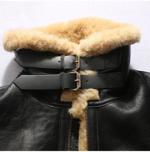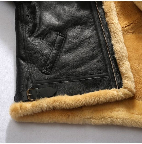 Men's Sheepskin B3 Bomber Jacket with Shearling Lining - Black | Cold-Weather Classic