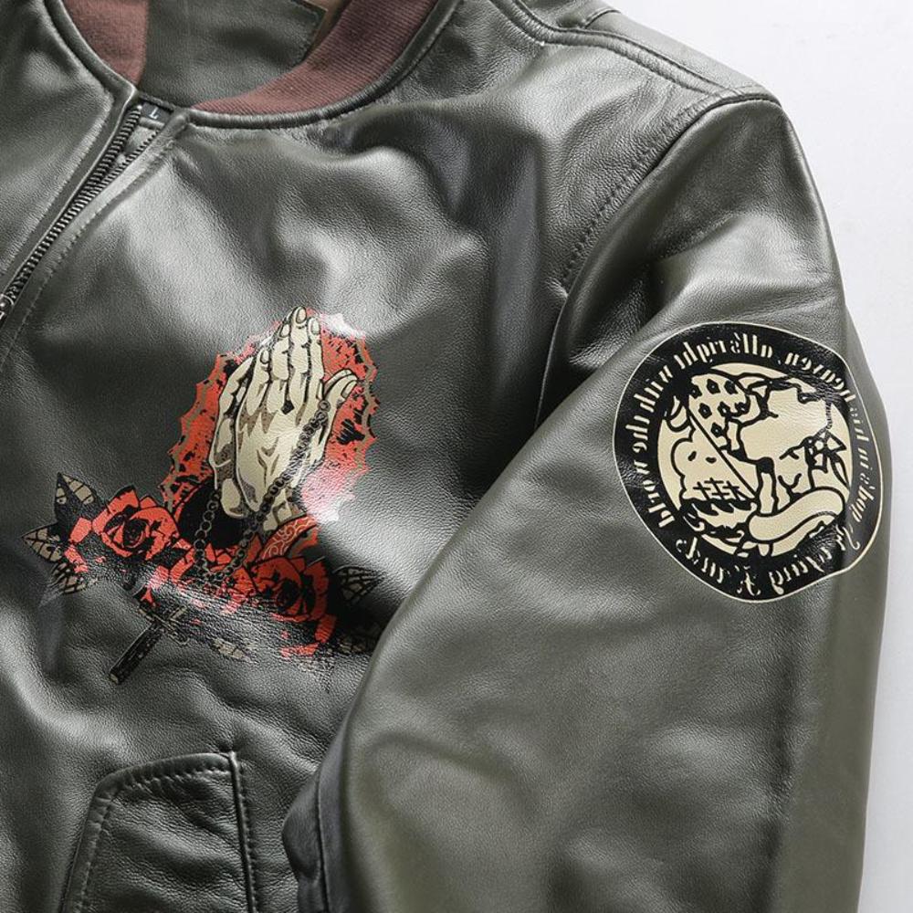 This jacket masterfully blends the relaxed style of classic American varsity jackets with the luxurious feel of genuine leather, showcasing impeccable taste. Its standout design features striking flame-lotus motifs on the chest and back, embodying a retro charm and a bold, individualistic spirit—a homage to the vibrant energy of 1950s American street culture. Crafted from premium Sheepskin leather with a thickness of 0.8 mm, this jacket offers softness and flexibility. The lightweight, supple leather provides a comfortable, reliable feel. With optimal warmth, this jacket is perfect for any season, offering a timeless, versatile style. The printing ensures vivid colors and clear details, with high durability and resistance to fading. The sheepskin material is soft and flexible, complementing the unique design for a distinct visual effect. The jacket features practical and stylish sheepskin pockets, designed for both functionality and a refined look. The softness and flexibility of sheepskin provide added comfort and durability, enhancing the overall style of the jacket. This jacket features a high-quality Japanese YKK Zipper for smooth, reliable operation. The durable design ensures easy closure, adding elegance and functionality to the look. The premium zipper reflects attention to detail, enhancing your experience. • Crafted with Premium Leather from Australia • Crafted from premium sheepskin leather